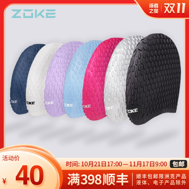 【初学者推荐】ZOKE洲克官方男女颗粒泳帽护发护耳防滑硅胶游泳水滴帽619503201